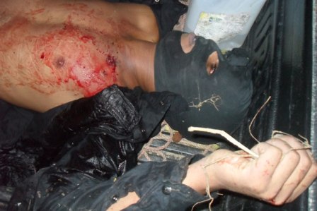 Incluso, ambos jóvenes con sus rostros encapuchados enviaron un alto a Santana Santos, pero éste no hizo caso, por lo que fue tiroteado de inmediato, resultando herido de un tiro en el vientre, sin embargo, pudo repeler la agresión matando de un tiro en el pecho que le destrozó el corazón a Balbuena, mientras su compañero de andanza delictiva huyó por unos matorrales.