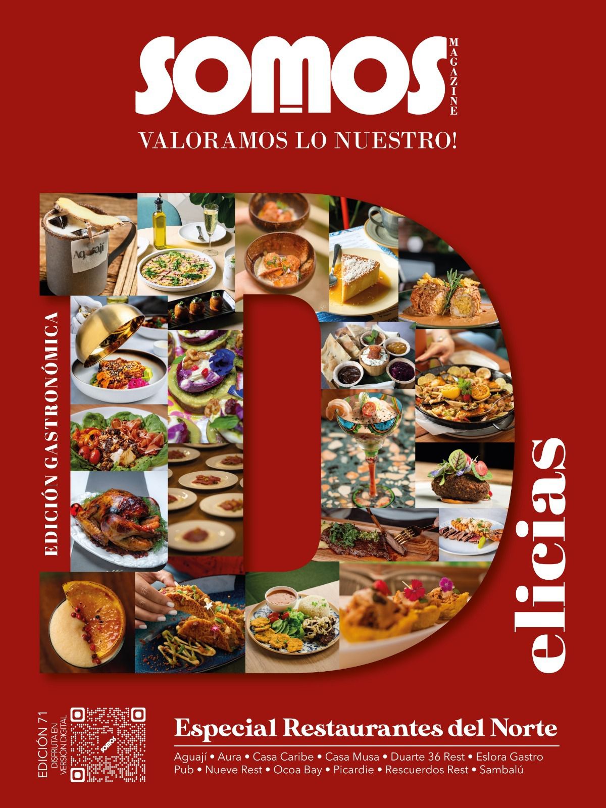 Durante la presentación oficial de la edición, Derissé de León destacó que “Delicias by SOMOS” es una publicación de 112 páginas que reúne un contenido repleto de sabor, reseñas y artículos que invitan a seguir valorando lo nuestro. La revista permite a los lectores conocer de primera mano las novedades gastronómicas del norte del país, con contenidos especiales dedicados a los restaurantes Aguají Aura, Casa Caribe, Casa Musa, Duarte 36 Rest, Eslora Gastro Pub, Nueve Rest, Ocoa Bay, Picardie, Rescuerdos Rest y Sambalú.